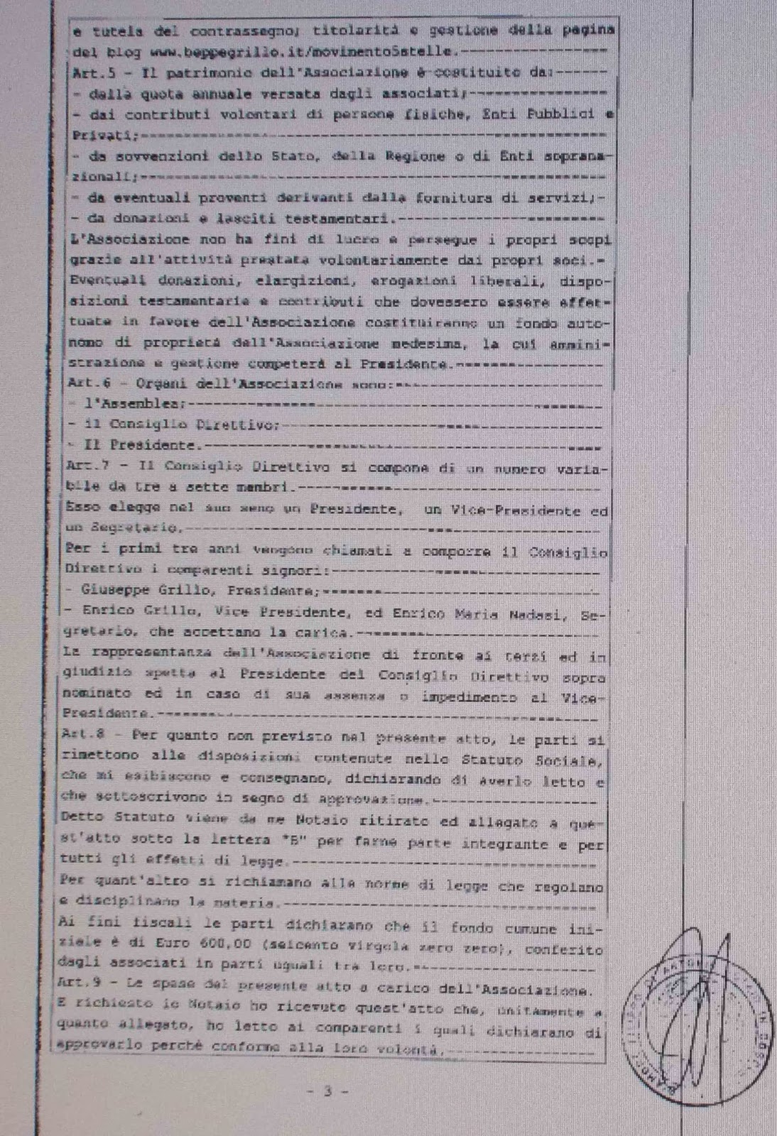 Repetita iuvant: torno a scrivere di questo specifico argomento a beneficio degli smemorati. Il 14 dicembre 2012 a Genova, dinanzi al notaio Filippo D'Amore, Beppe Grillo, suo nipote Enrico e Nadasi, hanno costituito l'associazione "Movimento Cinque Stelle".